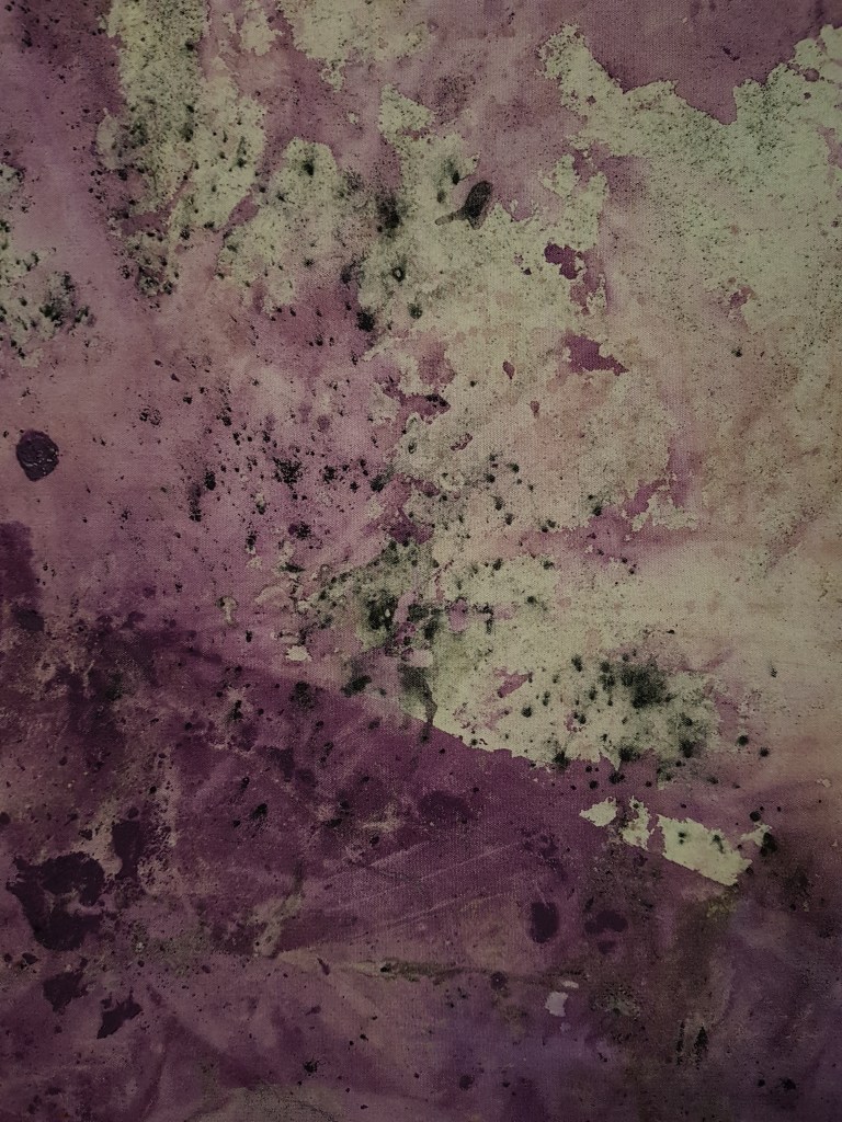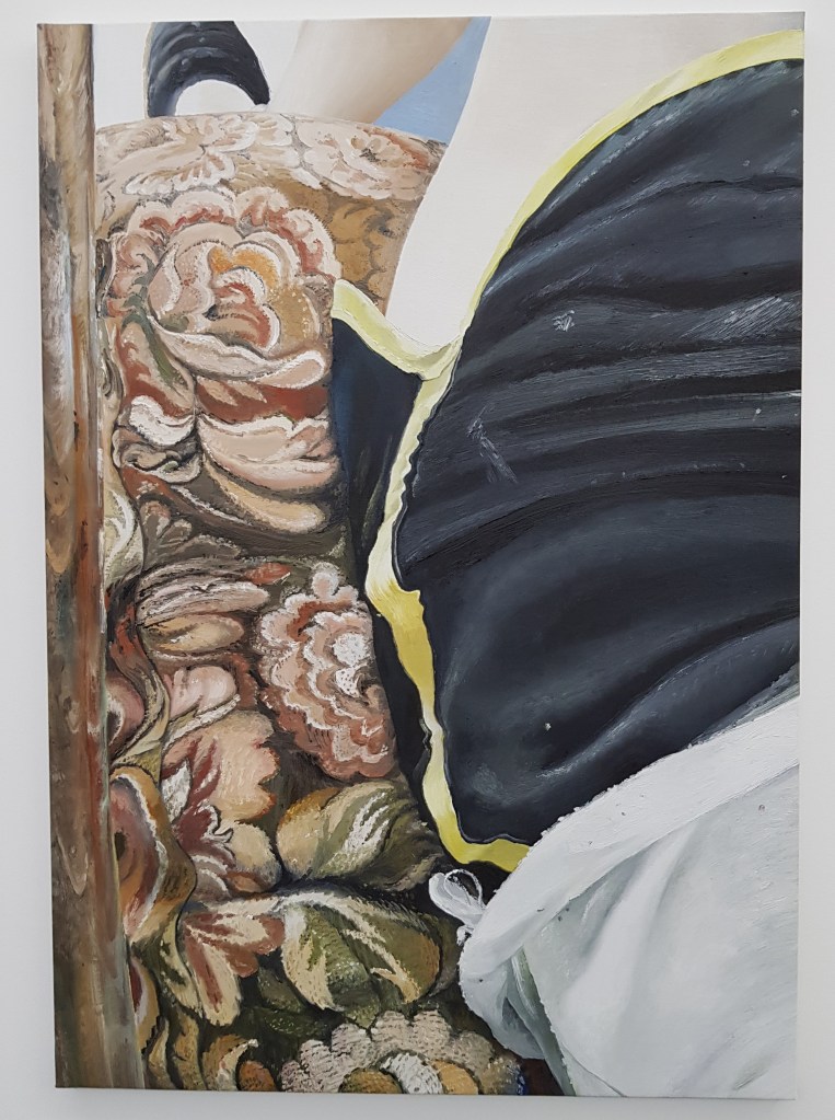 Mireille Blanc joue avec les repères de celui ou celle qui se plonge dans sa peinture. Travaillant à partir de photos, elle sélectionne un détail, un motif, une forme qu’elle agrandit, recadre jusqu’à en perdre l’objet d’origine. Sa matière riche et épaisse renforce la difficulté à reconnaitre ce que l’on observe. Une certaine forme d’étrangeté en résulte, très subtile, sans angoisse mais assez étonnement agréable.