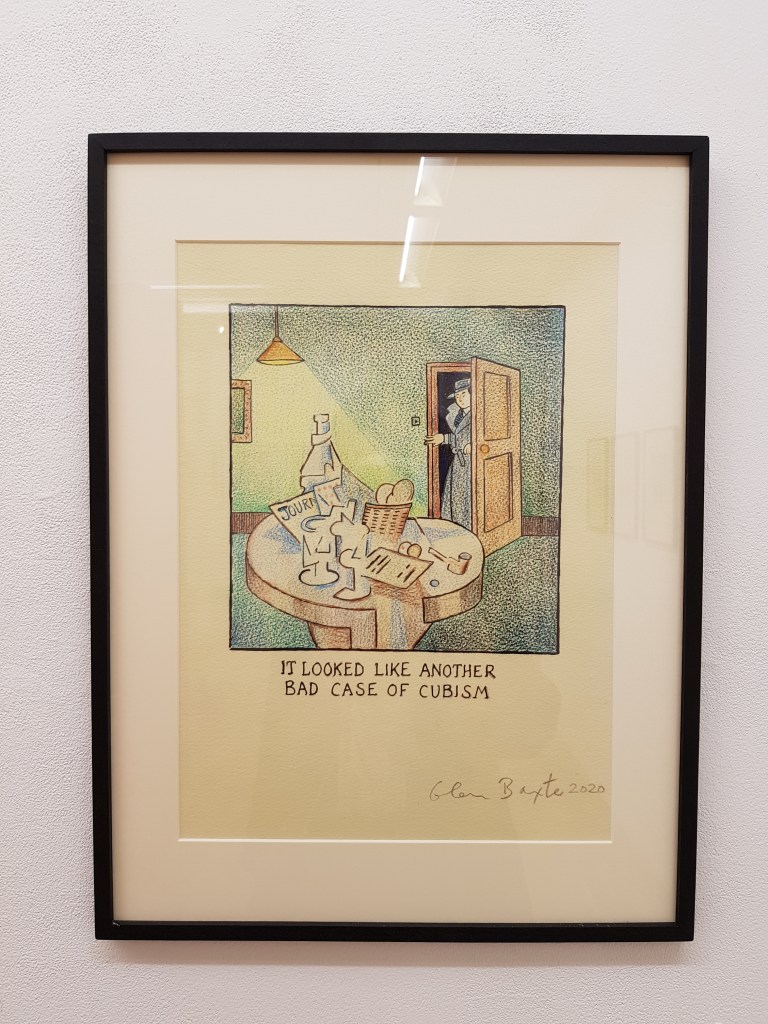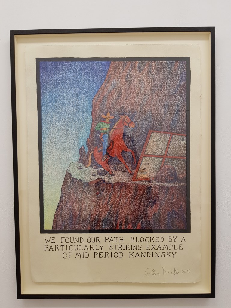 Je vous invite donc à aller déguster, telle une friandise, les bons mots savoureux de l’artiste britannique Glen Baxter, qui pour le coup, est loin d’être un petit nouveau dans le sérail. Il expose dans le monde entier, est présent dans de prestigieuses collections telles que celles de la Tate, de la New York Public Library ou du Centre Pompidou. Il a par ailleurs collaboré avec les très exigeantes revues The New Yorker ou Vanity Fair.